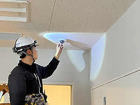 防犯カメラ設置の場合、なるべく配線を天井や壁の中を通したりして、見た目をスッキリとさせるのが大事なため、しっかりと事前調査を行い工事いたします。